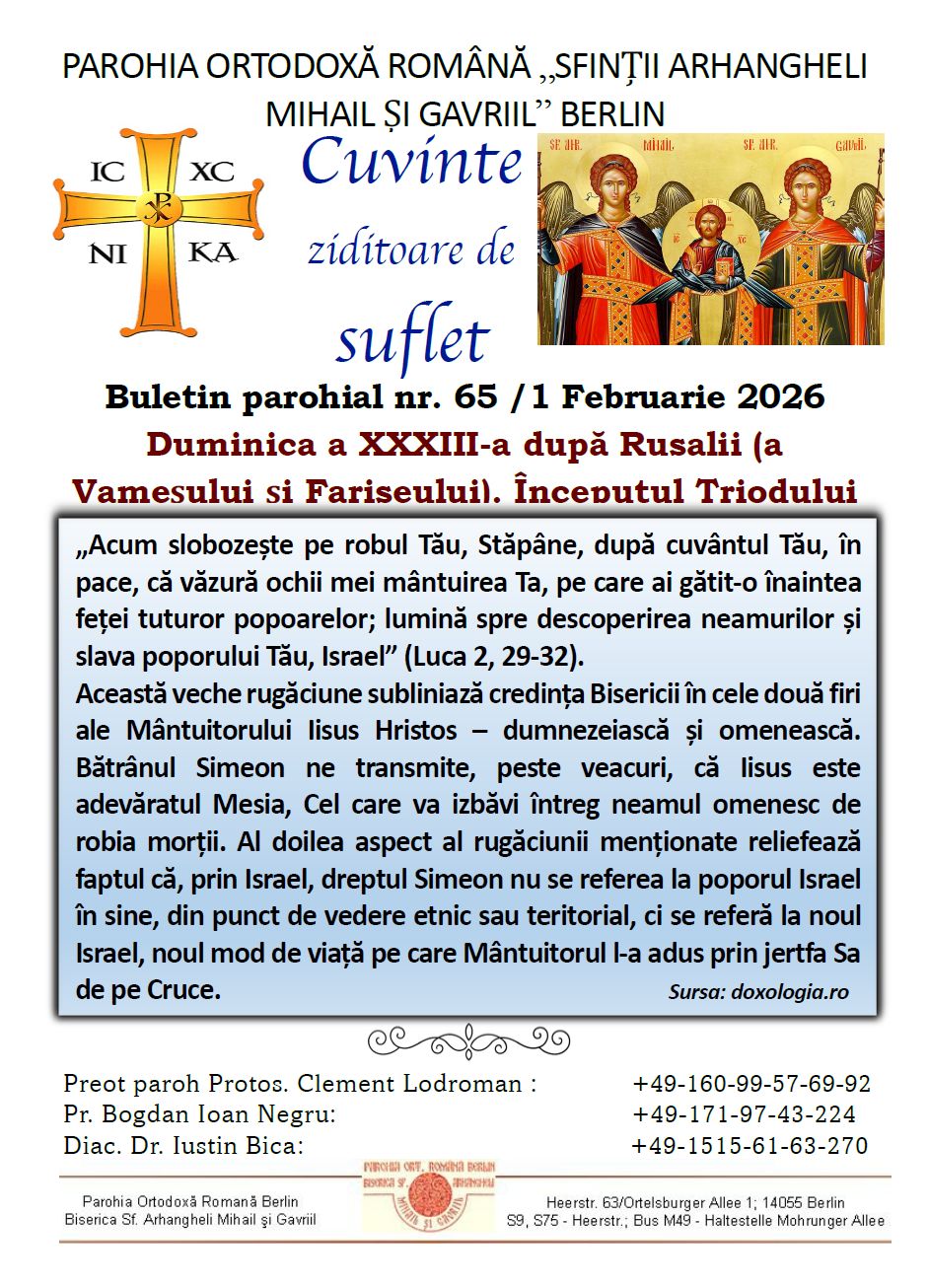 Programul liturgic săptămânal în perioada 01.02.2026-08.02.2026