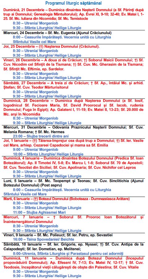Gottesdienstprogramm vom 21.12.2025 bis 11.01.2026